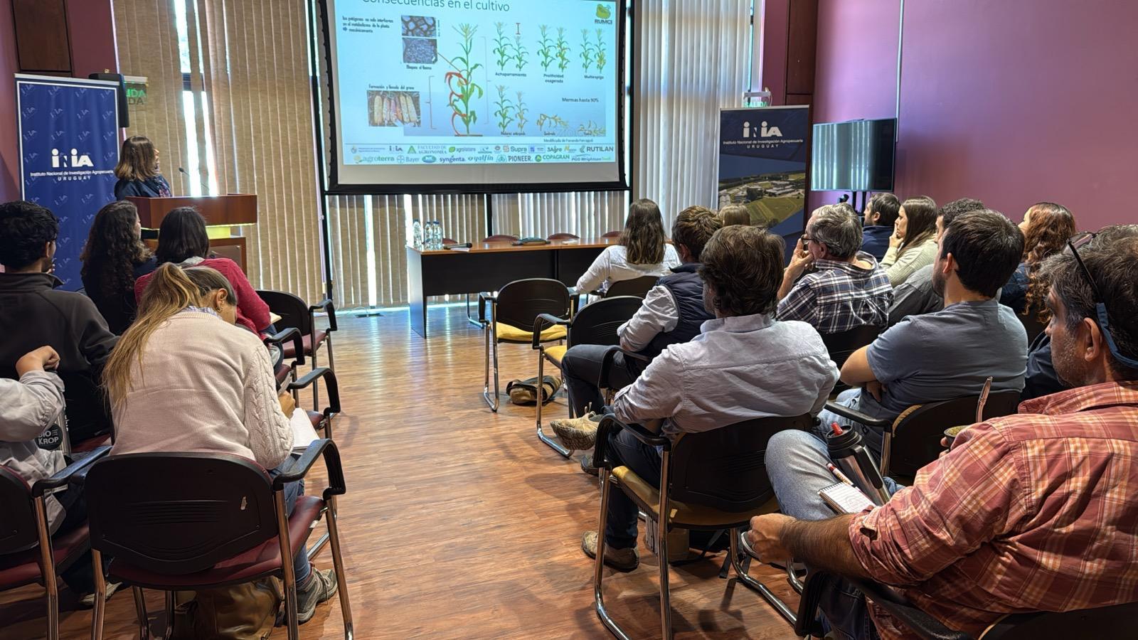 Finalmente, dieron lugar al intercambio con los presentes, reafirmando la necesidad de consolidar la Rumci como un espacio de articulación público–privada, clave para enfrentar los desafíos que plantea el achaparramiento del maíz en Uruguay.